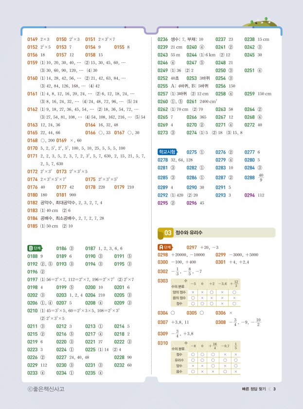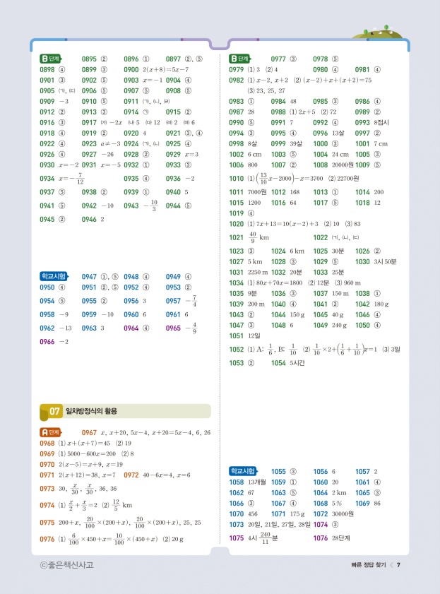 라이트쎈 수학 중1 답지