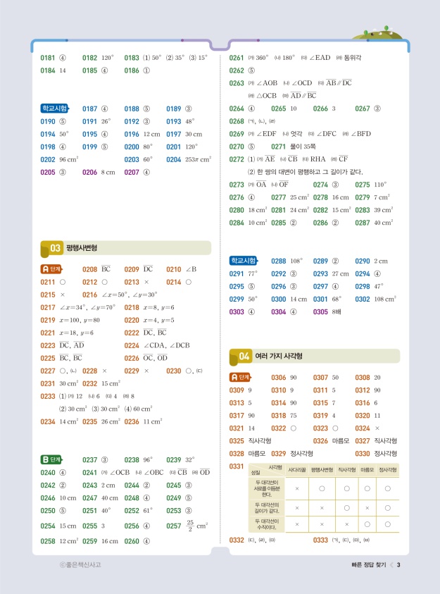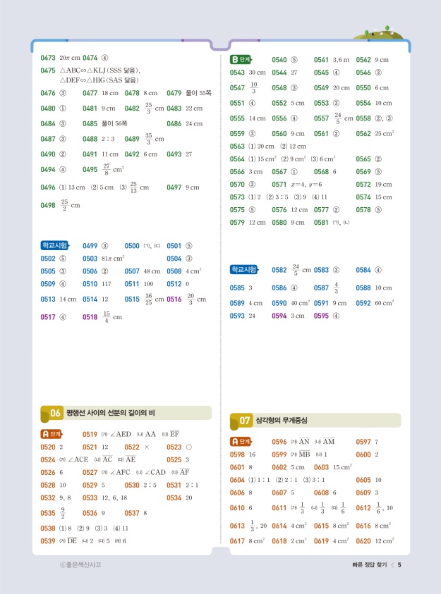 어렵지 않은 학교 시험 문제를 총망라한 후 문제해결에 필요한 개념, 해결 방법 등에 따라 유형을 더욱 세분화하여