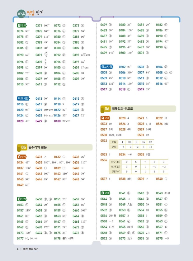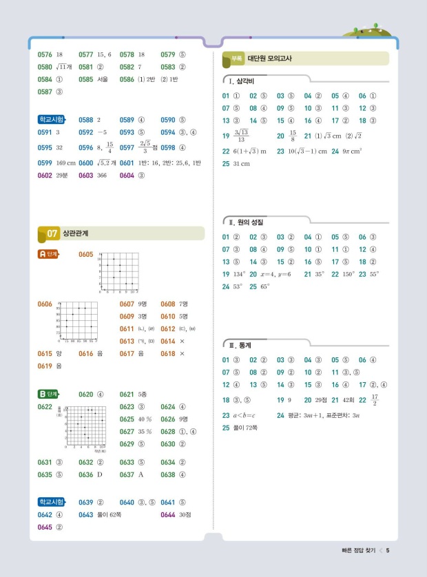 빠른답지와 해설답지를
